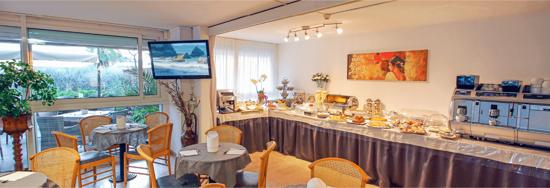 The 3-star Hotel San Marco is the ideal place for lunch and dinner thanks to its air-conditioned dining room with breathtaking views of the coast and the town of Riccione. The restaurant offers meat and fish dishes inspired by Romagna tradition, as well as a buffet rich in vegetables, salads, gratins, meat, fish, pizza, and desserts, including the typical piadina. The breakfast buffet, served in the shaded garden near the sea, includes a wide selection of sweet and savoury food, bread, cereals, and fruit juices for an energetic and tasty start to the day. For younger guests, our restaurant offers personalized menus and mealtimes, available on request.